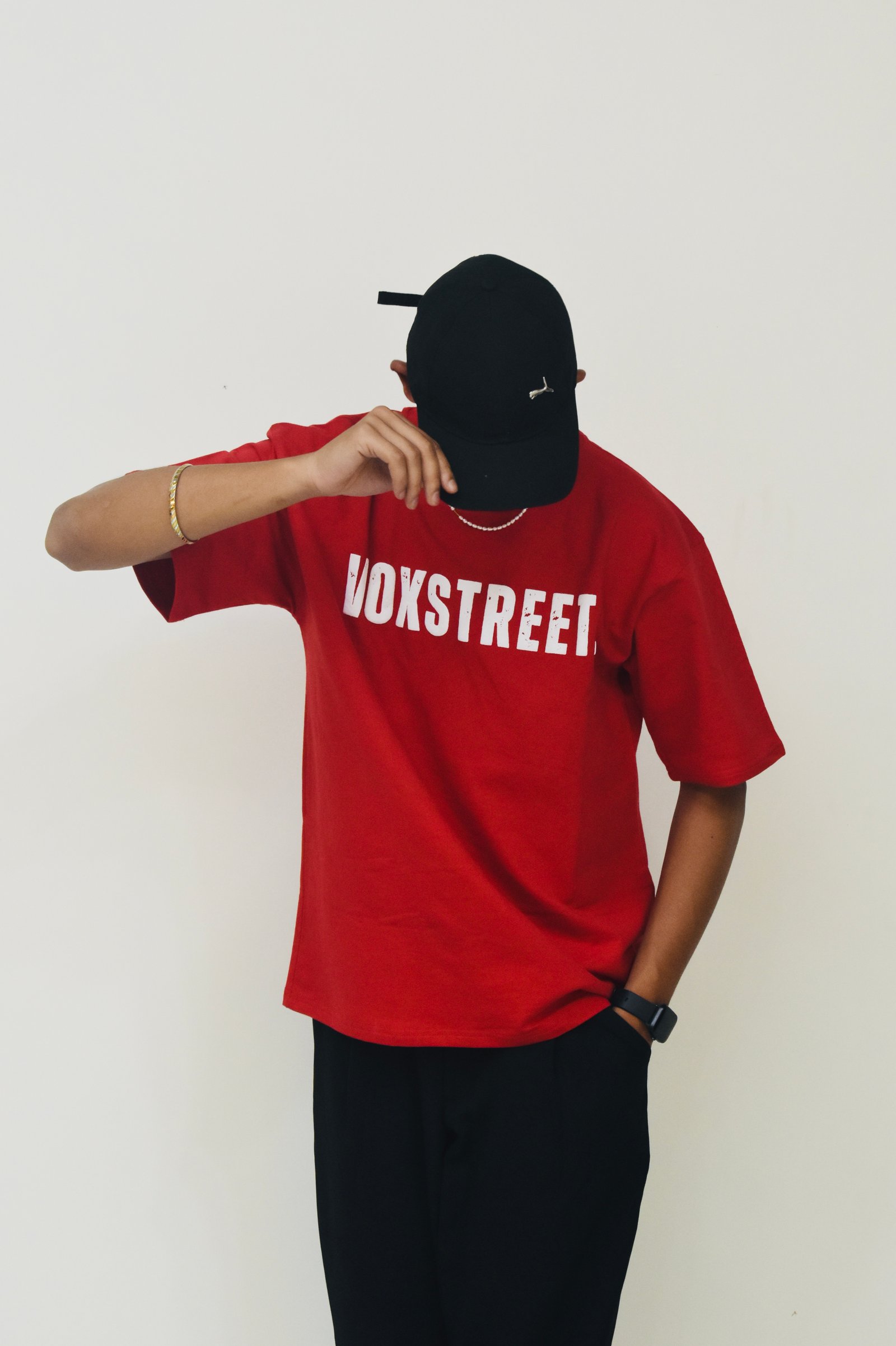 This red oversized t-shirt, crafted from thick 240 GSM cotton, delivers a bold look with a comfortable, relaxed fit. The "Voxstreet" logo is prominently featured in a puff print, adding a stylish, raised texture to the design. Perfect for making a statement while ensuring durability and comfort.